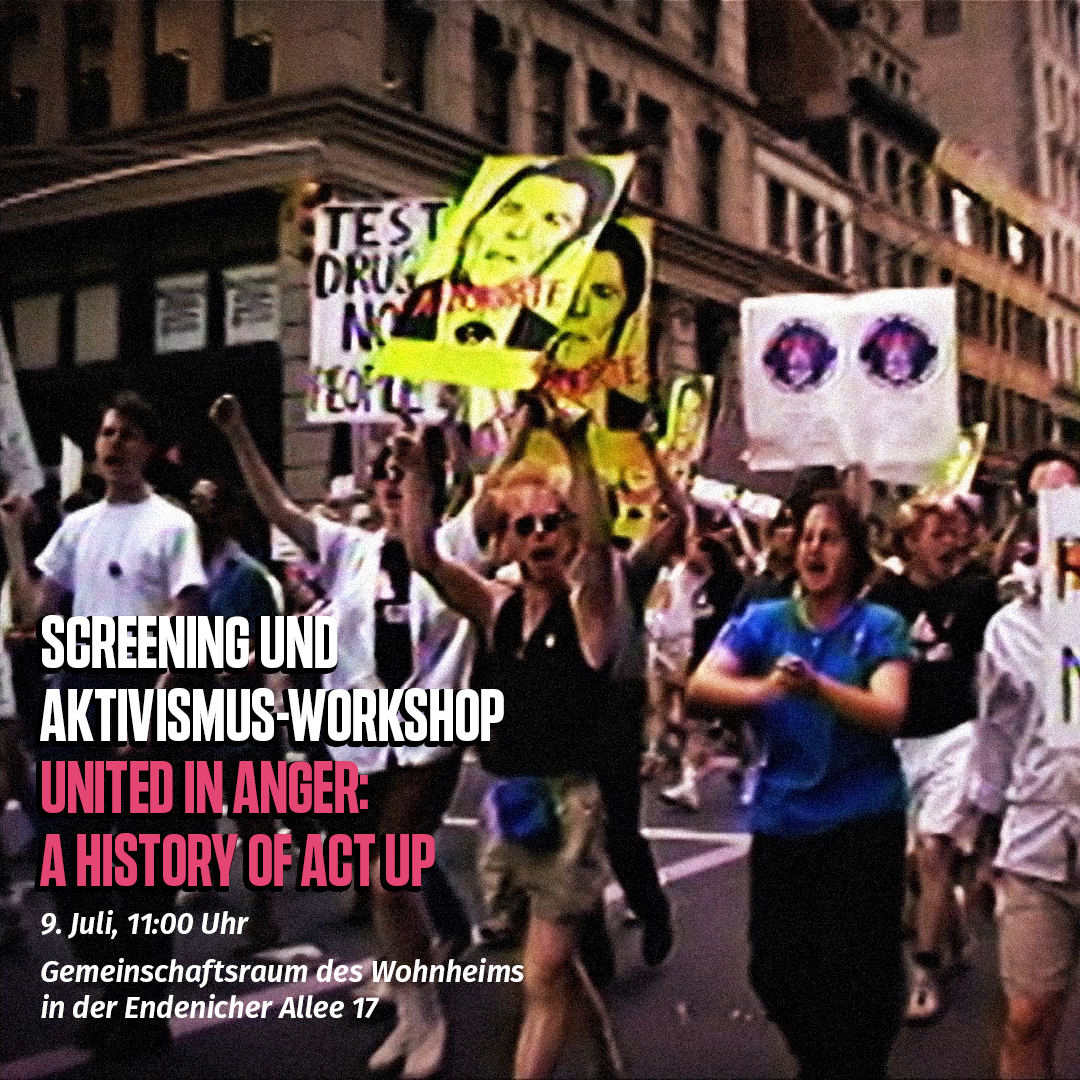 Wir werden zusammen den Dokumentarfilm „United in Anger: A History of ACT UP“ (2012) schauen. Dieser handelt von Entstehung und Wirken des AIDS-Aktivismus aus der Perspektive der Menschen, die an vorderster Front gegen die Epidemie kämpften. Mithilfe eines Diskussionsleitfadens wollen wir aus dem Beispiel von ACT UP lernen und die Organisationstaktiken und Kampagnenstrategien auf unsere eigenen Bewegungen von heute anwenden.