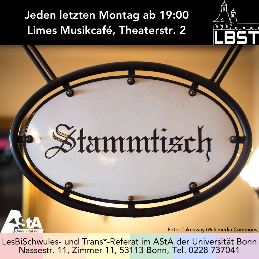 Wir laden jeden letzten Montag im Monat ein zum queeren Stammtisch für alle zu 40 Sorten Bier, rockig-guter Musik und einem Kicker.